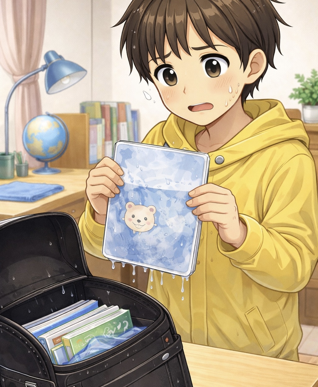 教科書やノートが湿ってしまうこともあります。